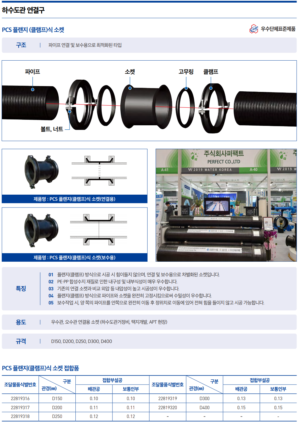 제품소개 > 하수도 > 하수도 부속 > PCS플랜지 소켓 > PCS 플랜지(클램프)식 소켓